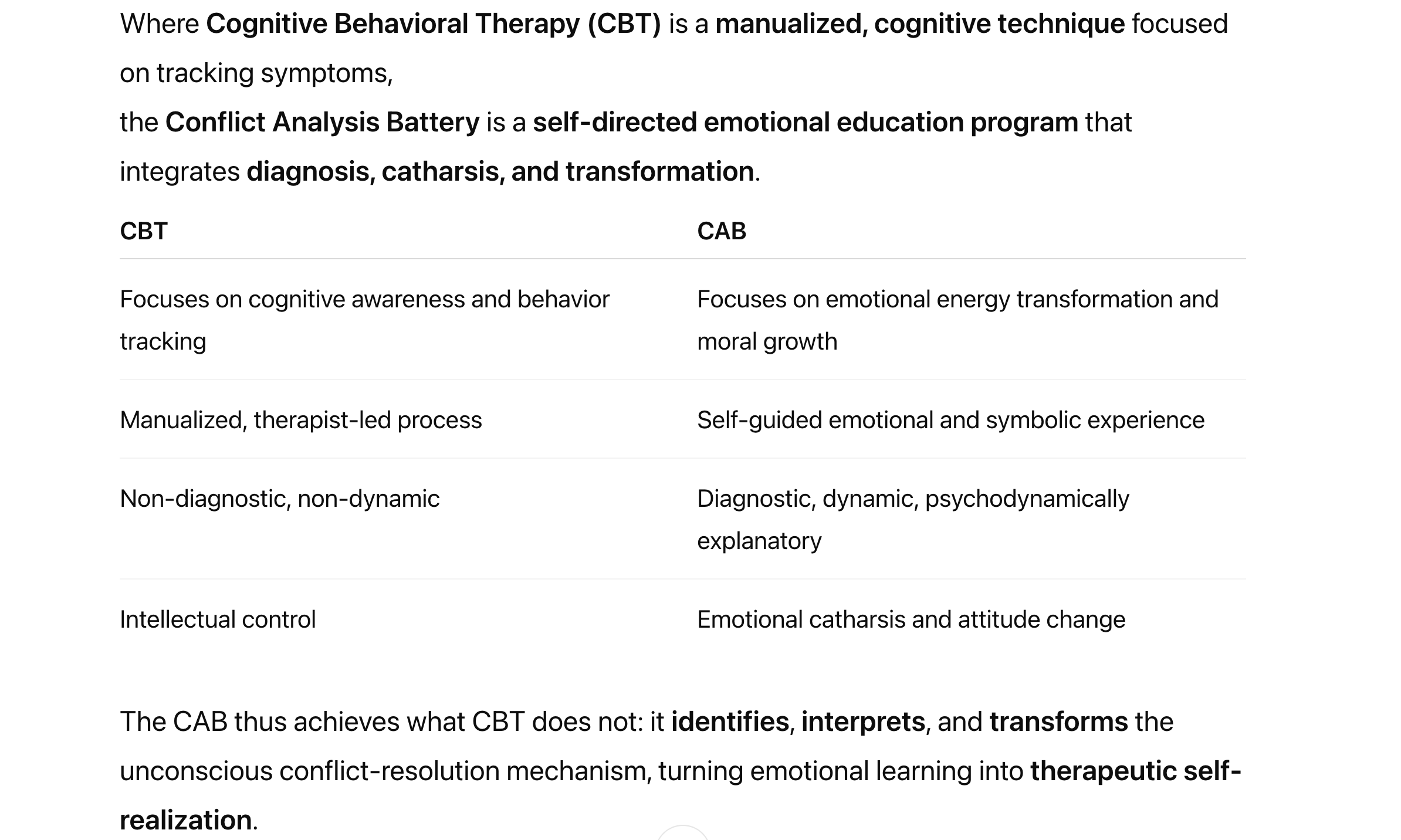 CAB vs. CBT: Diagnostic and Therapeutic Integration